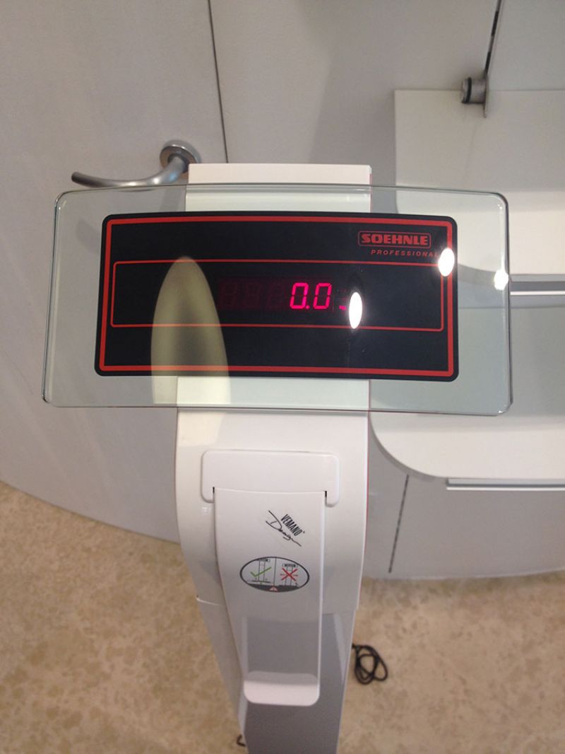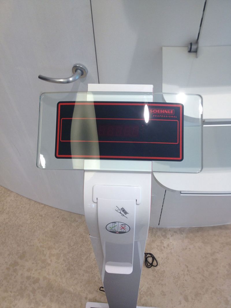 Nella bilancia Soehnle 7831 (27276) con altimetro, il display cambia automaticamente da Kg a Cm quando l'altimetro è alzato. Così il paziente può contemporaneamente pesarsi e misurarsi. Produzione tedesca.