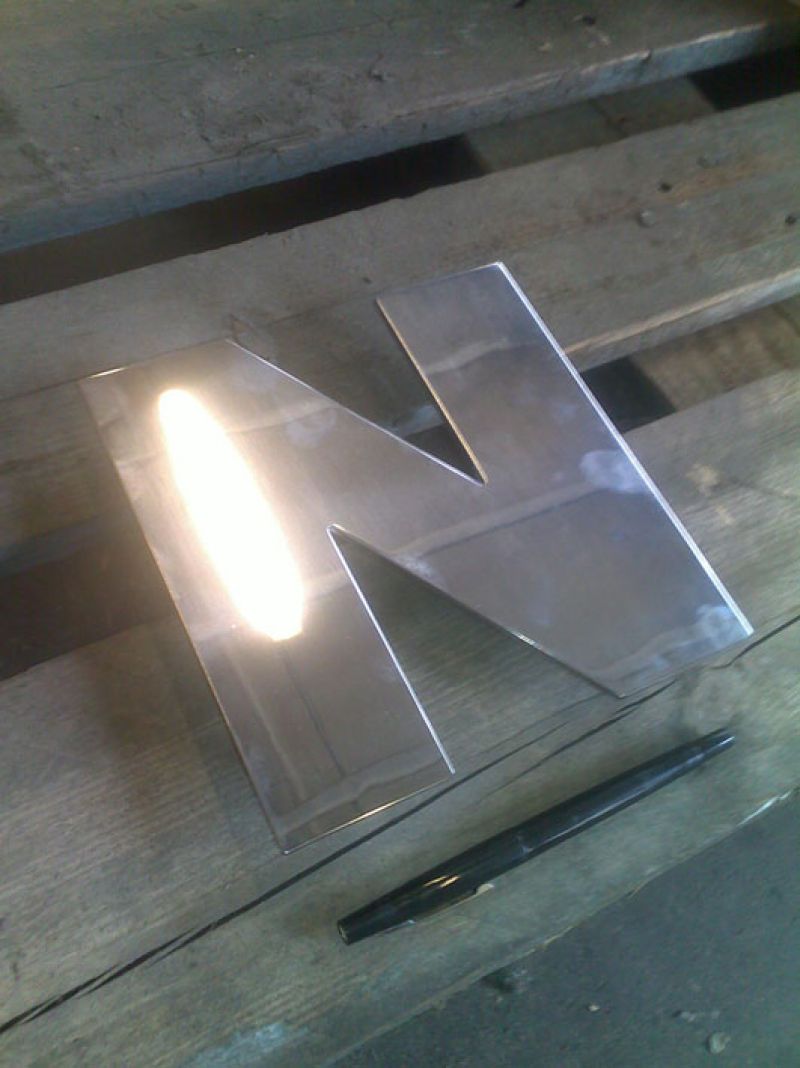 Lettere realizzate su misura in acciaio inox satinato lucido o opaco, fissate direttamente in facciata.
