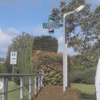 Segnale Luminoso LED di tipo Europeo FULL COLOR completamente programmabile, installabile in facciata oppure su struttura di sostegno verticale, in modo di garantire sempre un’ottima visibilità. Rispetto ai tradizionali segnali luminosi realizzati con tubi fluorescenti al neon, questi prodotti, a fronte di un significativo risparmio dei consumi energetici, garantiscono una maggiore visibilità grazie ai diversi effetti luminosi dinamici personalizzabili e una maggiore capacità informativa permettendo di visualizzare numerosi messaggi utili sui servizi della Farmacia, sugli orari di apertura e sulle promozioni commerciali in corso.